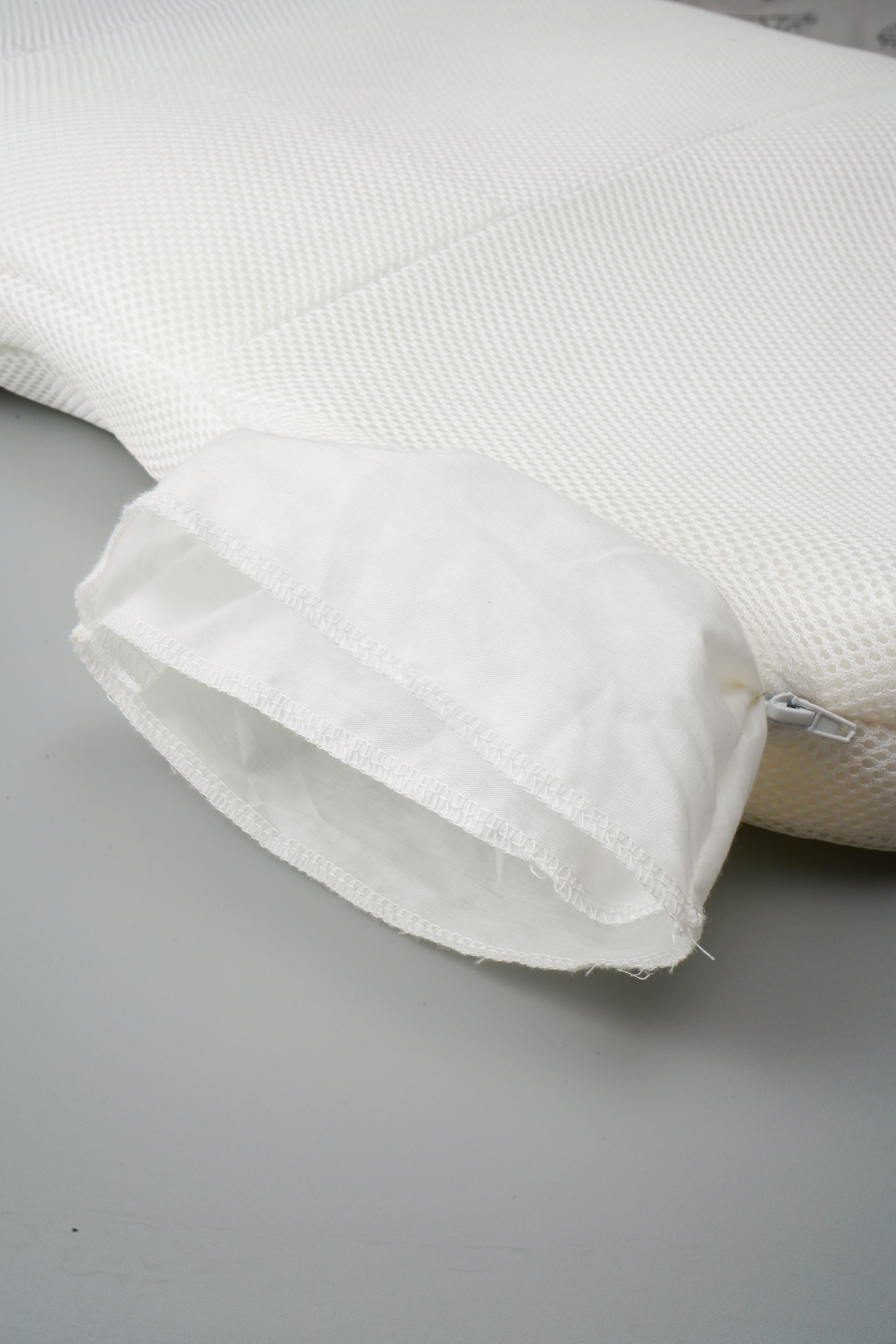 The area between the head and side sleeping incorporates a semi-open design. Remove the original filling and add flowable particles yourself. This allows areas outside the cervical support zone to move freely, reducing the constraints of the pillow's zoning design.